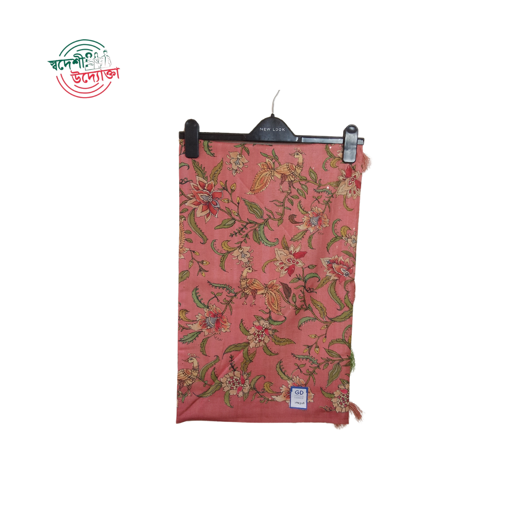 Add a touch of elegance to your wardrobe with this exquisite Full Silk Shari, designed for women who value tradition and style. Made from 100% pure silk, this saree offers a luxurious feel with a smooth, glossy finish, perfect for casual yet sophisticated looks. The vibrant orange color, adorned with intricate floral and peacock motifs, exudes timeless charm. Available in stunning shades like pink and green, this 14 Hath (approximately 6.5 meters) saree ensures a graceful drape for all-day comfort. As a special feature, it comes with a Chikun Jori Oar (fine border detailing) and a running blouse piece, allowing you to create a complete, coordinated ensemble effortlessly.