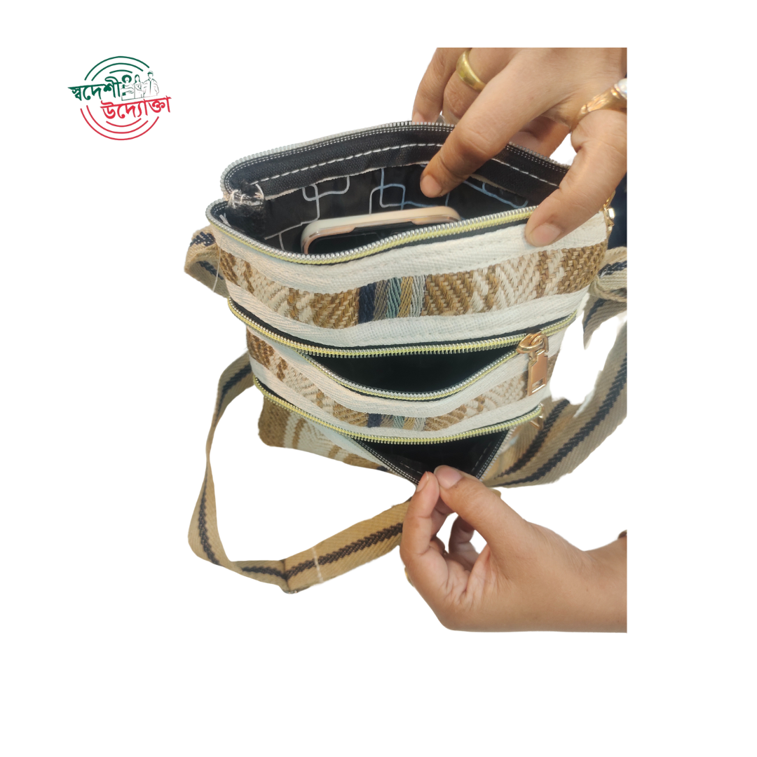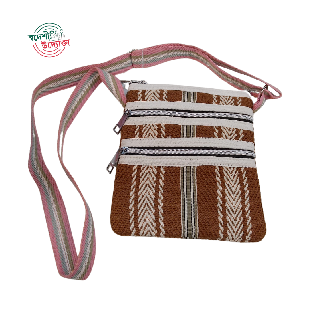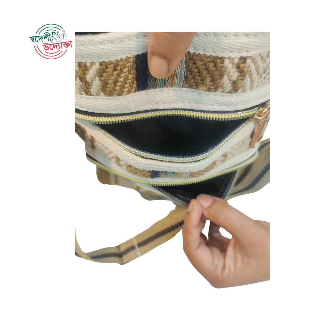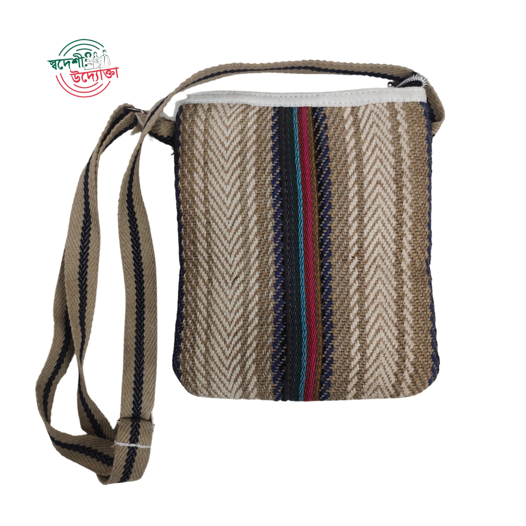 Discover the Mobile Purse Bag, handcrafted from original Bangladeshi jute and cotton thread. Measuring 7 inches by 8 inches, this small and attractive unisex bag is perfect for securely holding your mobile phone and money. Priced at 350 Taka, it combines traditional craftsmanship with practical design, making it an ideal accessory for daily use or gifting.
