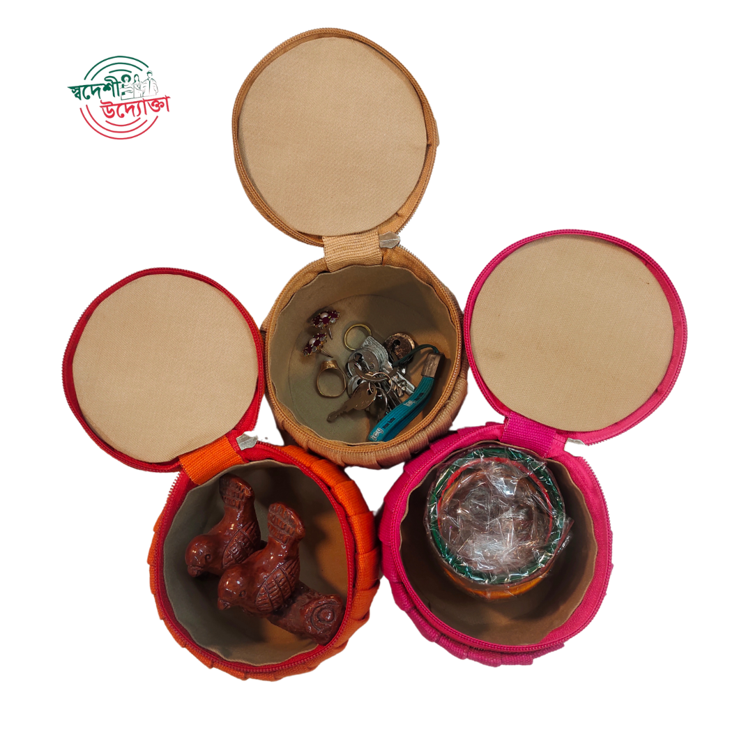 Organize your essentials with style using this Pink Jute Pumpkin Box, a perfect blend of functionality and casual charm. Crafted from eco-friendly jute, this round storage box features a vibrant pink color with a textured finish, adding a pop of personality to your accessory collection. Measuring 5 inches in diameter, this compact box is designed to hold your jewelry, hair bands, makeup, and other small items, keeping them safe and secure whether you’re at home or on the go.