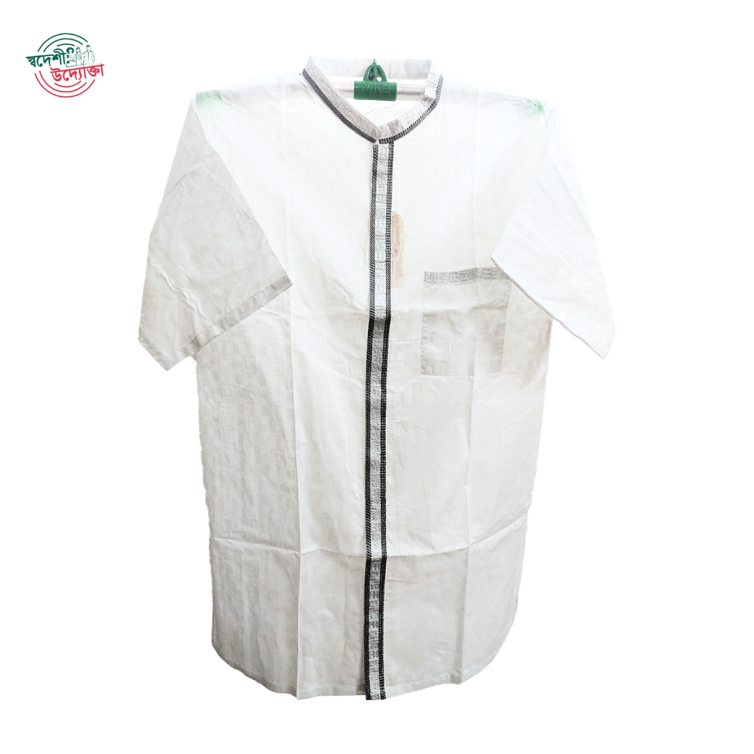 Embrace timeless elegance with our Pure Cotton Fatua, expertly woven from breathable addi cloth in a stunning white . Featuring delicate embroidered thread work near the neck, this fatwa is available in sizes 40, 42, 44, and 46, catering to a perfect regular fit. Complete with a band collar and front pocket, it offers simplicity and exceptional comfort, making it ideal for mature individuals seeking style and ease in Bangladesh’s hot weather. Priced at just 680 Taka, this garment blends tradition with practicality.