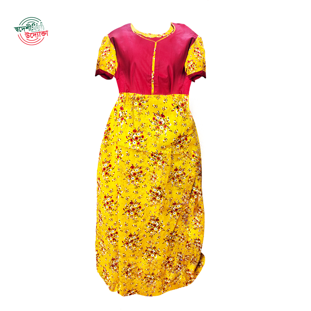 Discover the ultimate in comfort and style with our Premium Maxi Dress, crafted from soft, breathable pure cotton. Inspired by Prince’s vibrant palette, this dress allows you to choose your preferred color for a personalized touch. Featuring a printed design with a simple border on the neck and sleeves, it offers a length of up to 54 inches (adjustable to your liking), a 16-inch neck, and a round-edge cut. Available in free size 54 inches with Maggie slip sleeves, this versatile dress is perfect for both home wear and pregnancy, ensuring all-day ease. Priced at just 950৳, it’s a sustainable fashion choice that celebrates local craftsmanship. Shop now for this elegant, pregnancy-friendly addition to your wardrobe.